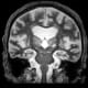 A coronal magnetic resonance imaging section shows a high-intensity focused ultrasound lesion in the left thalamus of the brain.